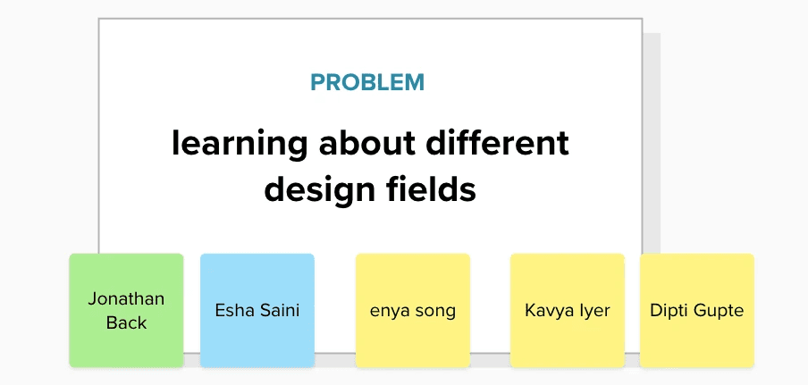 After going through the prioritization exercise, I realized that we had individuals interested in ideas across the board, and there were also some differences in the time commitment people were willing to devote to this project. Between that and the fact that we had multiple ideas, I decided to offer members the opportunity to split into multiple teams of 3-5 interns. Some of the projects were more research based, but I wanted to be on a project that involved more web design aspects as well. Based on that, I joined the team that was tasked with creating a solution that allows designers to learn about the different design fields available within IBM.