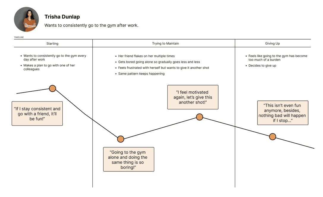 I also used those themes to create a user journey based on the user persona I created earlier.