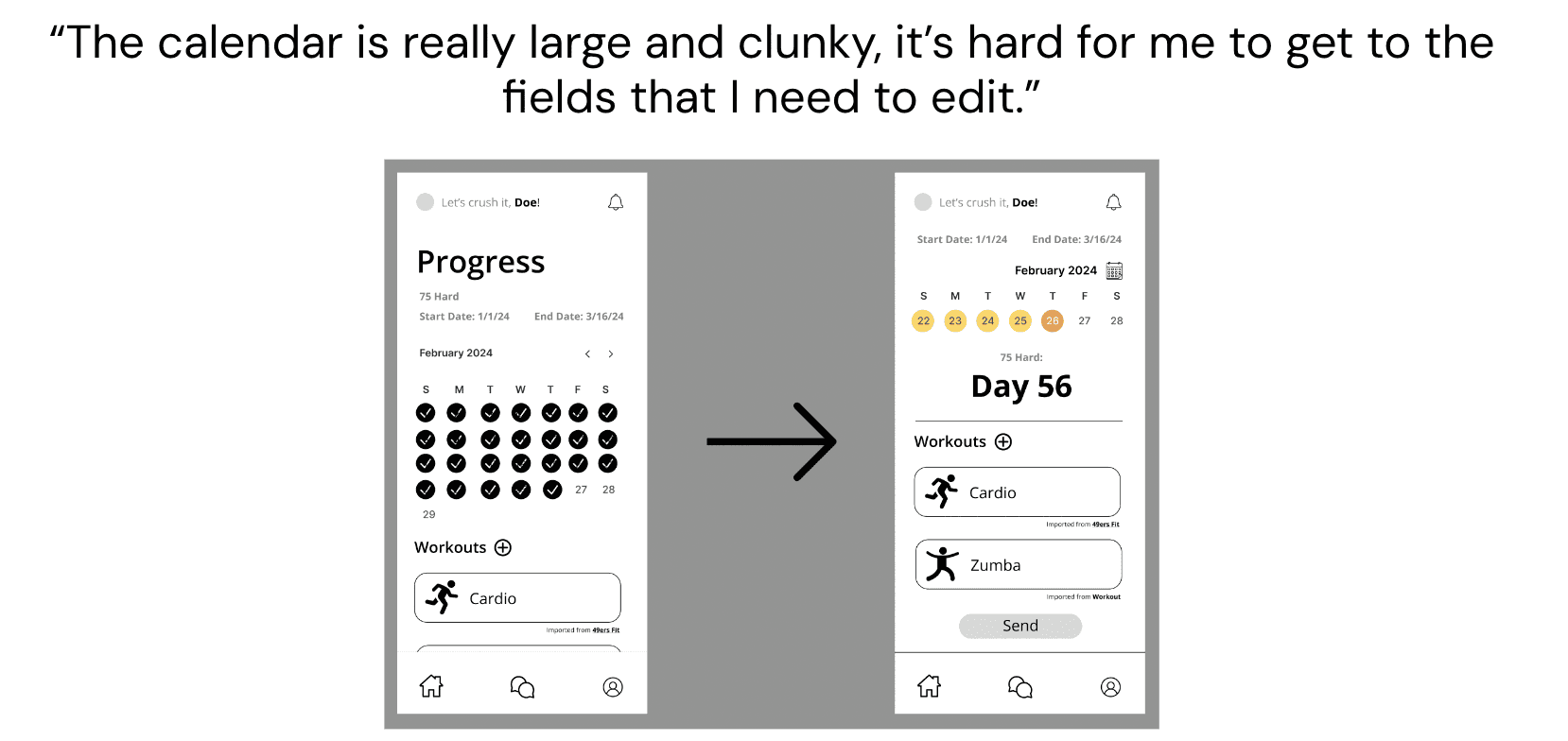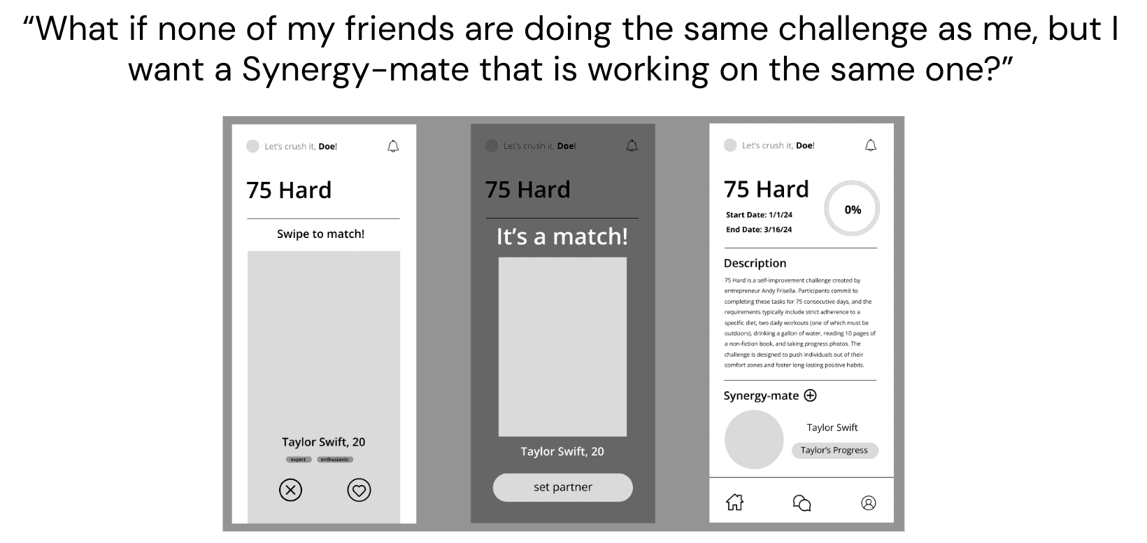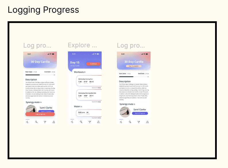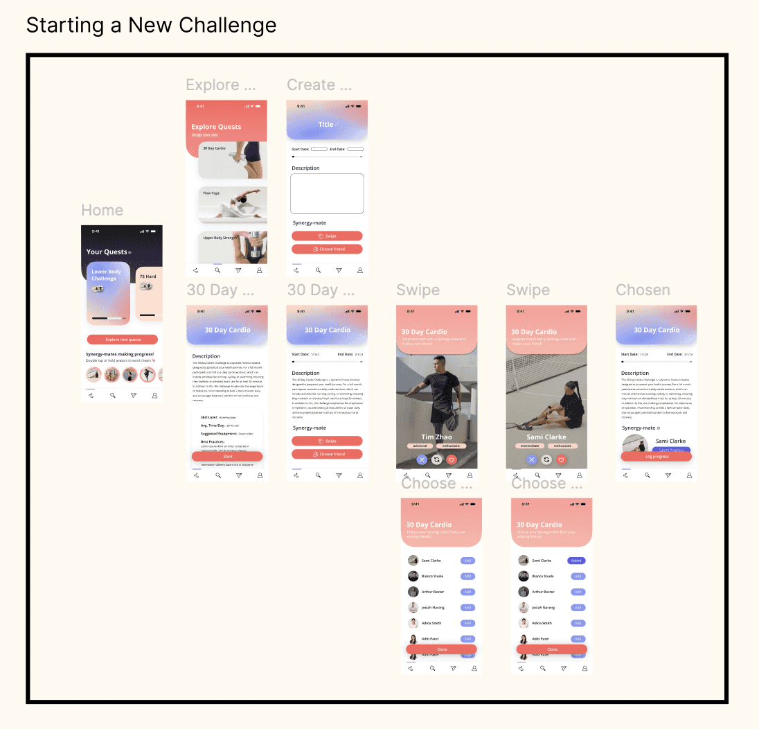 This helped me solidify that I wanted an app that placed an emphasis on communication between users more so than the actual challenges/workouts they might be doing. This storyboard was also when I first realized that I may be able to integrate some psychology concepts into the way the app was structured!
