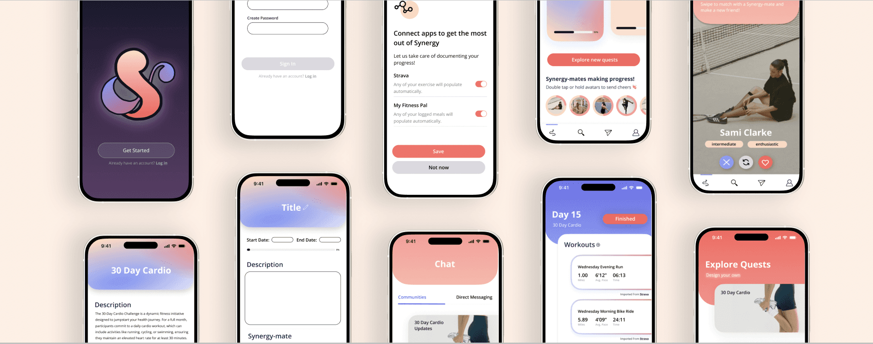 The concept of Synergy reminded me of new beginnings. This whole project was inspired by the new year, and this idea of turning what were once independent, isolated goals into larger team efforts was reminiscent of users coming together and getting a new chance to accomplish their goals — this time together as a community. Because of this, I wanted the color palette to be reminiscent of dawn, since that is what I think of when I think of new beginnings.